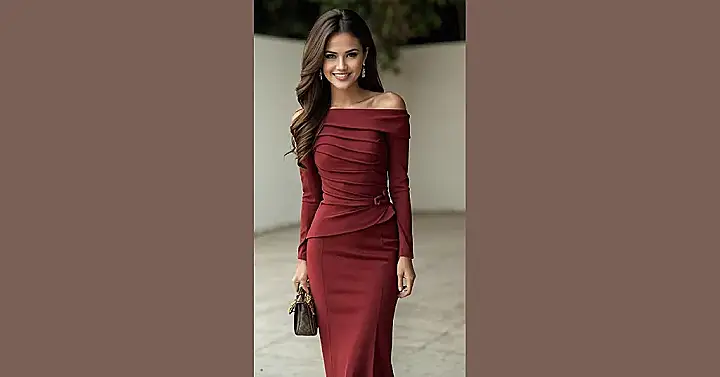 Seriously, this shows that simple doesn’t mean boring! Who needs a mountain of frills when you’ve got a dress that’s elegantly tailored and fits like a dream? This maroon masterpiece shows off how a sleek, form-fitting design can be the most stylish choice. Think less fuss, more fabulousness. And let’s be honest, that gorgeous smile adds the perfect finishing touch. Sometimes, less is definitely more, especially when “more” means radiant confidence.