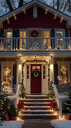 This house is seriously rocking the Christmas spirit! Look at all those twinkling lights – it’s like a winter wonderland exploded onto the porch! They’ve got garlands draped everywhere, making the whole place look like a cozy, festive hug. You could practically smell the hot chocolate and gingerbread just by looking at this picture! It makes me want to grab some mugs and join in on a snowball fight (even though it’s probably too warm for that).