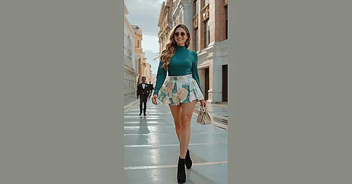 From the cafe to the art gallery, your ensemble effortlessly transitions from day to night. The modern asymmetry of your blouse hints at a bold creativity, while the sharp cut of your high-waisted skirt maintains a timeless allure. Every piece of your outfit tells a story, blending the classic with the contemporary in a seamless fusion of style. As you catch your reflection in the store window, you can’t help but feel empowered by the transformative power of fashion, embracing your femininity with a sophisticated twist that sets you apart.