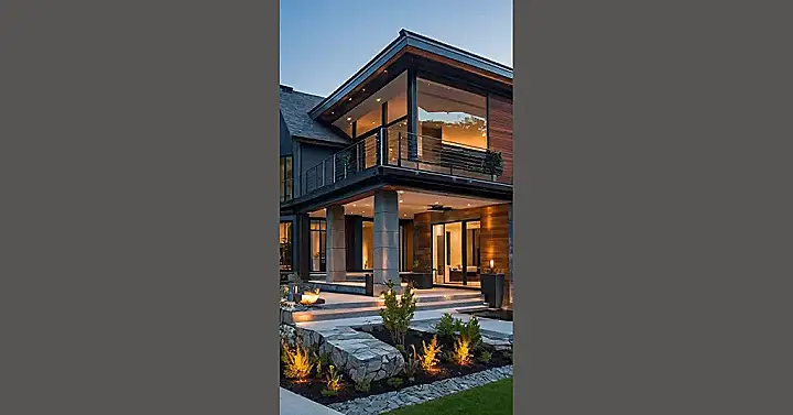 This house is so cool; it looks like something straight out of a fancy magazine! With all those glass windows, you could basically live inside a giant terrarium. Imagine watching the rain from inside while chilling on that balcony – instant good vibes! Seriously, though, who wouldn’t want to host the ultimate movie night here?