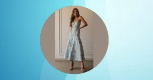 What makes this ‘fit and flare’ style extra fun is thinking about that ‘flare’ at the bottom! While we can’t see the full twirl-power right now, you just know this dress is designed for some serious dance floor action later. Picture gliding across the room, feeling elegant and light, then suddenly the bottom half decides it’s time to join the party with a swish and a sway. It’s perfect for celebrating, whether you’re doing a graceful waltz or secretly trying to moonwalk without anyone noticing. This dress basically screams, ‘I’m sophisticated, but I’m also here for the cake and a good time!’