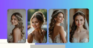 Let’s kick things off by talking veils. Who doesn’t love a dramatic entrance adorned with a beautiful veil? The right choice can work wonders, whether you’ve chosen a long, flowing style or something a bit more casual. A chic half-up hairstyle paired with a light veil can create an enchanting yet fun aura, thus enhancing your bridal beauty. Your guests will be left gasping when they see how the veil frames your lovely face!