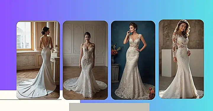 This wedding dress is seriously rocking that “fit” part, looking like it was custom-made for a red carpet and not just an aisle! See how it hugs everything just right, showing off those amazing curves? It’s got super intricate lace everywhere, from the long sleeves that look like delicate art to the sheer top that gives it a little extra sparkle. You just know wearing this makes you feel like a movie star who’s about to drop a mic, or maybe just perfectly pose for a million photos without even trying.
