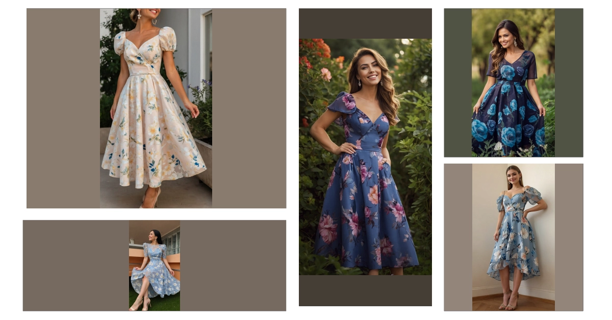 First up, we’ve got long floral gowns that are pure elegance in fabric form. Slip into one of these stunners for a classy evening event, and watch as everyone tries in vain to look as good as you. Seriously, with a long umbrella of flowers wafting around you, it’s like being wrapped in a fragrant hug. You’ll want to strut down the carpet like you’re on a runway!
