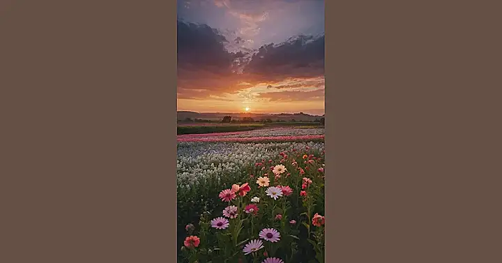 Have you ever walked through a field of flowers and felt like you’re in a movie scene? Well, this photo makes you feel like that! It’s like a rainbow exploded, and all the colors landed in a field. You can almost smell the sweet scent of those flowers and feel the soft breeze on your face. And the photographer really nailed it, capturing all those vibrant colors against the dreamy sunset.