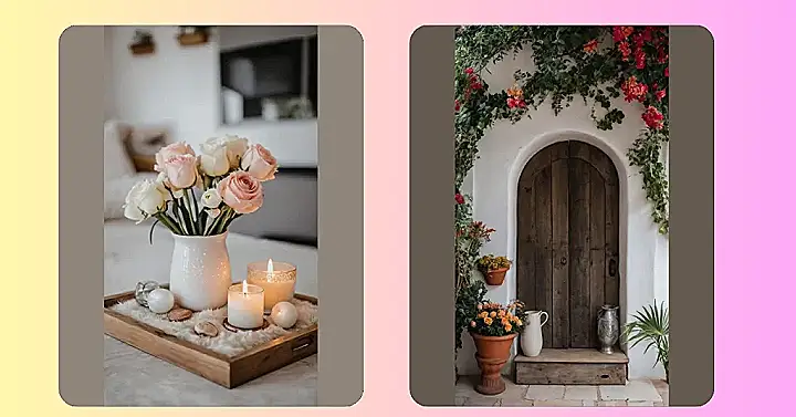 And who can ignore that fantastic purple door? It’s not just a door; it’s a statement piece, probably whispering, “My favorite color is *fabulous*.” Paired with those joyful pink blooms, this home’s flower decor isn’t just pretty; it’s practically a giant welcome mat for your soul. With that cozy table ready for snacks and that comfy-looking seating, this isn’t just a doorway; it’s an invitation to kick back, relax, and soak up some seriously good vibes. It proves that a little imagination and a whole lot of flowers can turn any home into a show-stopping, smile-inducing masterpiece.