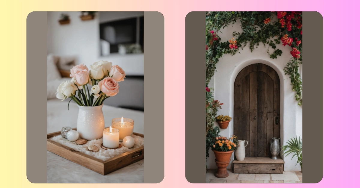 Walking into a room that feels a little ‘meh’? This picture is basically a masterclass in how to turn your space from ordinary to awesome with just a few touches of home flower decor. Those delicate pink and white roses aren’t just sitting there looking pretty; they’re practically secret agents for good vibes, making everything feel instantly softer and more inviting. They don’t need Wi-Fi or complain about chores, yet they single-handedly elevate the entire room’s mood – talk about pulling their weight!