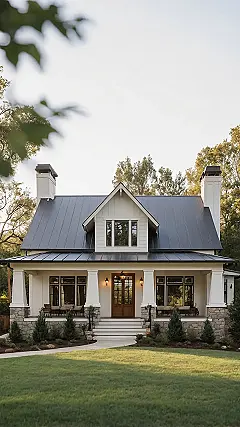 Check out this house – it’s basically the superstar of home design, flexing its awesome dark siding and those super cool wooden accents. You can practically hear it whispering, “I was built to last, unlike my neighbor’s flimsy garden gnome.” The sturdy stone base makes it look grounded and ready for anything, whether it’s a surprise visit from your crazy aunt or just a regular Tuesday. This isn’t just a house; it’s a whole vibe, probably saying, “Yes, I look fantastic, and no, I didn’t even have to try that hard.”