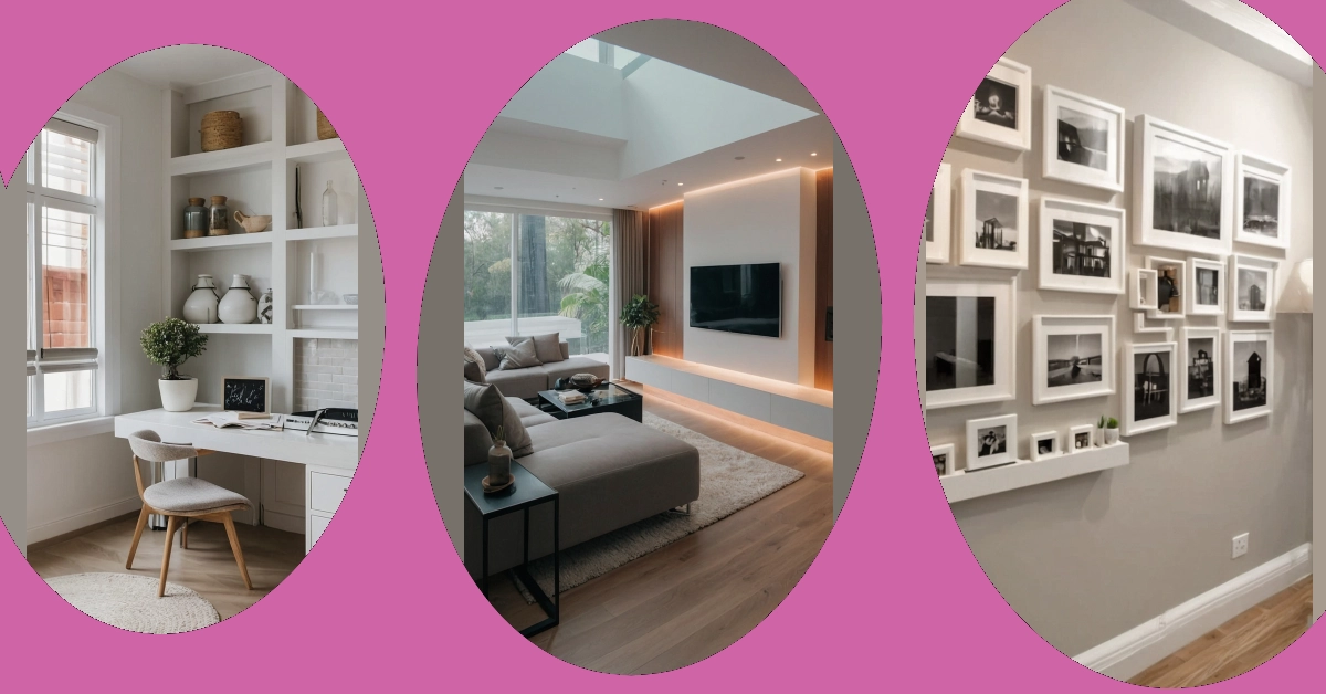 This wall is like a picture frame party! So many frames, so little space, but it’s all working together like a trendy dream. It’s like a mini-museum in your living room, but instead of dusty old portraits, it’s got cool, modern photos that could be from your own Instagram feed!