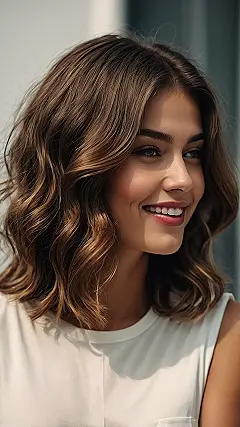 Those soft waves aren’t just doing their own thing; they’re totally in sync with that radiant smile! It’s like her hair is saying, ‘Yep, we’re having a good time, come join us!’ This whole vibe just screams ‘effortlessly cool,’ making you feel like she’s about to share the secret to passing that impossible math test or finding the best snack. It just goes to show that a little bit of wave and a lot of happy can make anyone look like they’ve won the lottery, or at least found all their missing socks.