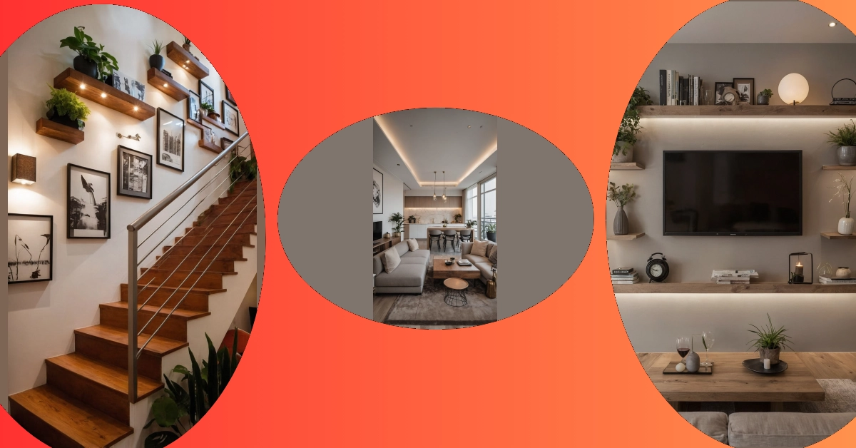 Tired of staring at a blank wall that looks like it’s silently judging your life choices? Giving your apartment walls a glow-up is way easier and more fun than it sounds! Just check out this awesome staircase area – those floating wooden shelves, complete with cool plants and tiny spotlights, make a huge difference. It’s like turning a plain white canvas into your own personal gallery, but instead of fancy art critics, you get to impress your friends and maybe even your pet goldfish. Adding these simple touches can completely transform a boring space into something vibrant and full of personality.