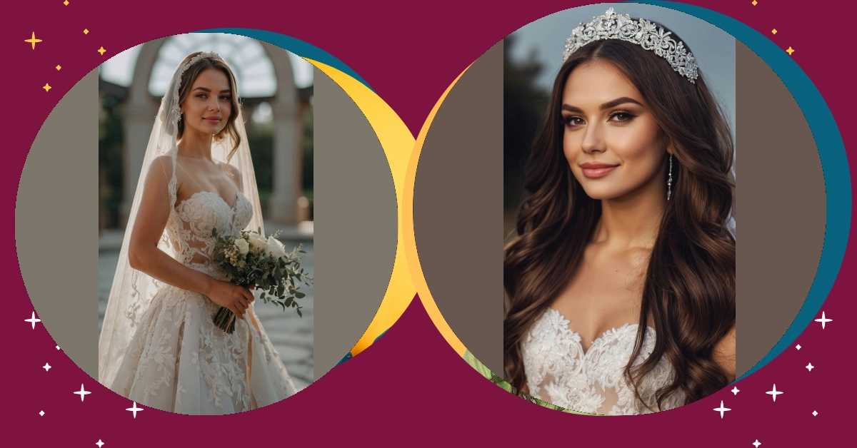 When you think wedding hairstyles, do you lean more towards the cozy aesthetic of hair down or the sophistication of a bun? You can rock that romantic vibe with tousled locks flowing down your back while having a whimsical veil drape beautifully over your shoulder. And for those who seek elegance, a perfectly polished updo adorned with a sparkling tiara is as classic as it gets—trust us, that combo never goes out of style!