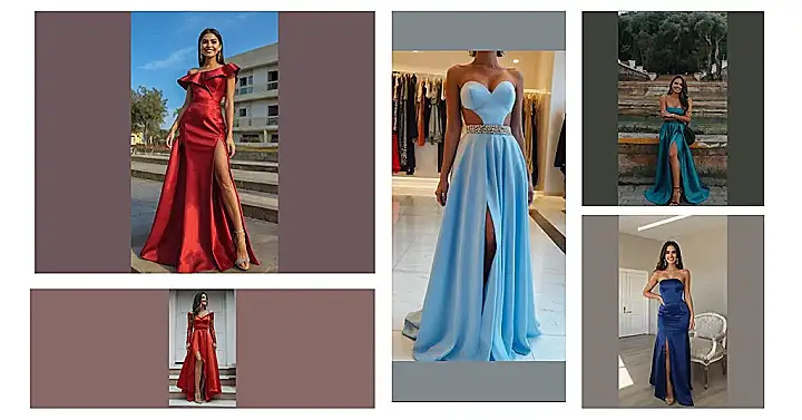 We all know that red dresses are a classic for a reason—who doesn’t want to capture that show-stopping allure? But let’s not forget the lighter shades! Cute pastel pink and light blue hues radiate sweetness and sophistication, which makes them perfect for twirling across the dance floor and posing for selfies. You’re going to look SO good!