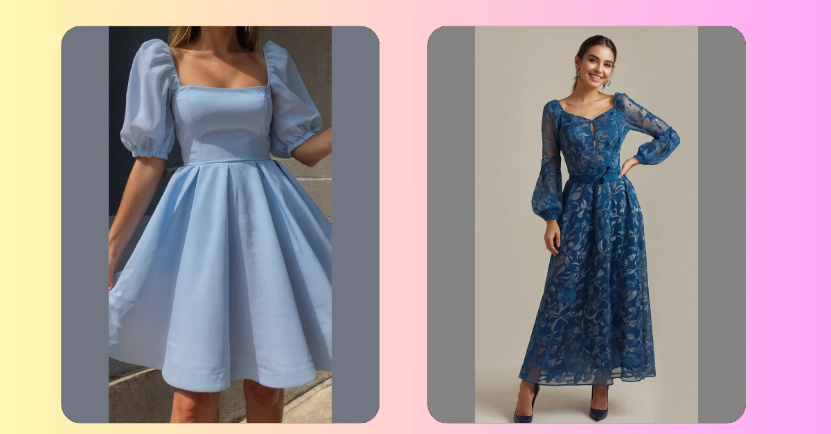 #7 Puffy Sleeves and a Flirty Flair: A Blue Floral Frock Fit For a Queen