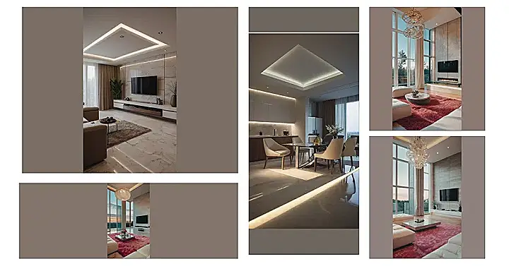 But the best part? That awesome chandelier! It looks like a bunch of fluffy clouds got tangled up together, and they’re just hanging out, illuminating your super-fancy living room. If you ever get to live in a place like this, don’t forget to invite me over for a movie night! Just make sure to have plenty of popcorn and candy!