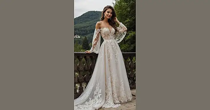 Just look at this absolute showstopper of a gown! This isn’t just any wedding dress; it’s practically screaming ‘royal wedding, but make it effortlessly chic on a fabulous European balcony.’ With its dreamy off-the-shoulder design and lace details that probably took a team of tiny, dedicated elves ages to embroider, it totally brings those Meghan Markle or Kate Middleton vibes. You’d feel like actual royalty just walking (or gliding, more like) in something this magnificent. Forget tiaras; this dress is the crown jewel itself, ready for its big moment.