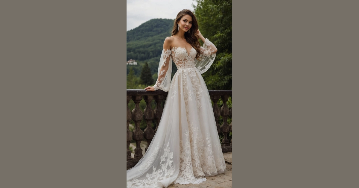 Take a good look at this stunning white gown, because if you’ve ever secretly wished for a royal wedding, this dress just might be your official audition! With lace from head-to-toe (or at least, from shoulders to the very end of that dramatic skirt), it practically screams ‘I’m important, and I probably have a tiara somewhere.’ The intricate patterns on the long sleeves and bodice are so detailed, you’d think a team of tiny, enchanted squirrels spent weeks stitching them on. It’s the kind of dress that makes you feel like you could float down the aisle of Westminster Abbey, or at least your local community hall with a serious upgrade.