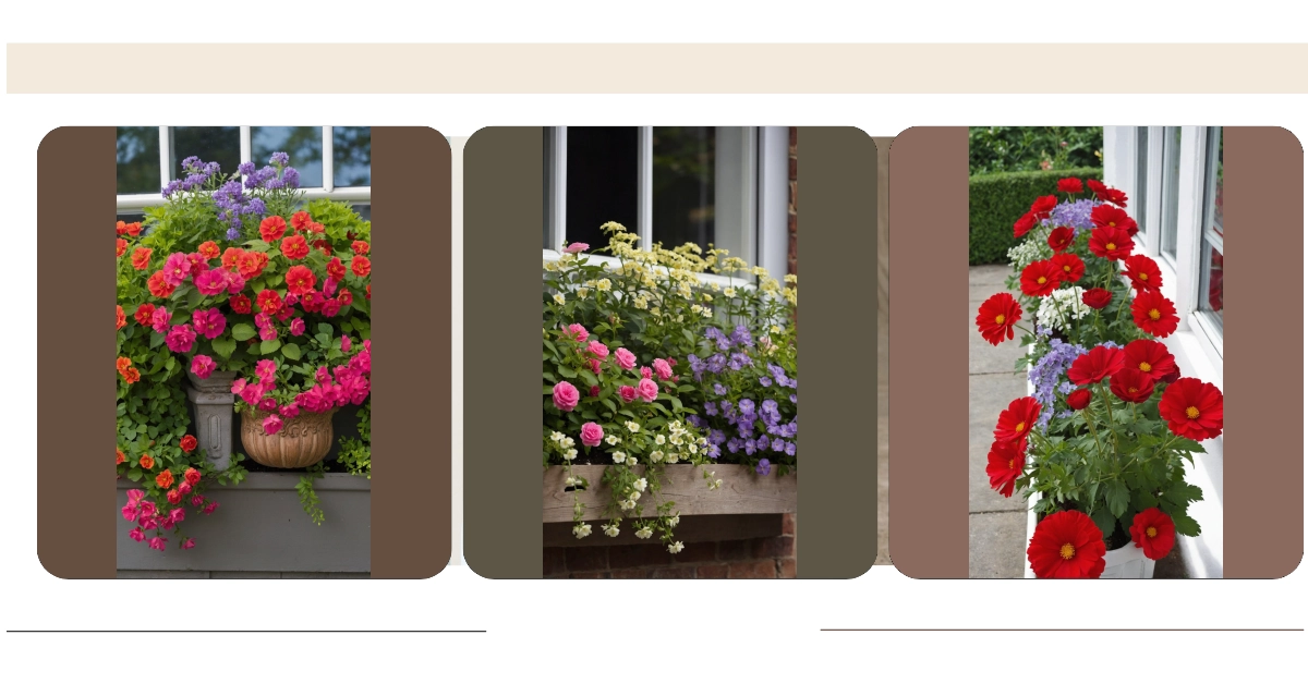 Check out these window box flowers! They’re like the ultimate party crew hanging out right below your window, making everything look instantly cooler. Instead of just a plain old wall and glass, you get this wild splash of pink, yellow, and purple petals putting on a show. It’s basically like your house decided to wear a really snazzy hat, waving hello to everyone who walks by and saying, “Yep, we live here, and we’ve got serious flower power!”