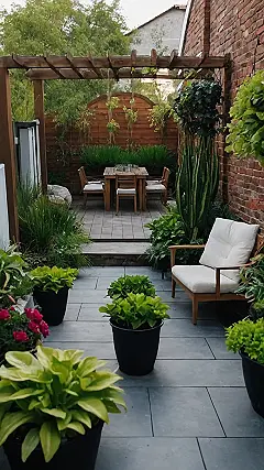 This little garden is proof that you don’t need acres of land to create a beautiful space. Just look at this cozy courtyard! It’s like a mini-vacation right in your own backyard. Imagine sipping lemonade under the pergola, surrounded by the sweet smell of flowers and the sounds of birds chirping. The brick wall adds a touch of rustic charm, and the lush greenery creates a feeling of peace and tranquility.