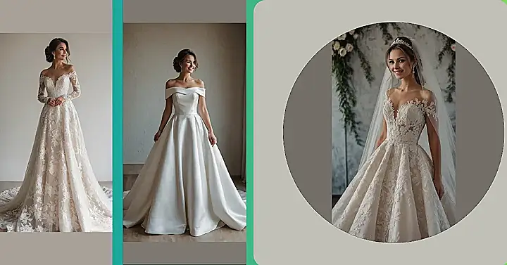 And let’s be real, this dress is basically giving major “main character energy.” That off-the-shoulder neckline? Super chic, showing off just enough while keeping it classy, which is perfect for looking great in all those selfies without having to adjust constantly. Plus, that full skirt looks so fun to swish around, even if it might secretly be trying to trip up your significant other during the first dance. In 2025, it seems wedding fashion is all about feeling amazing and looking like a million bucks, but also being able to eat cake without feeling like you’re stuck in a cardboard box. This dress is basically saying, “I’m here to slay, but also, pass the appetizers!”