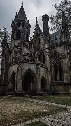 While this building looks like it’s straight out of a scary movie, it’s actually pretty cool. Gothic architecture is known for its intricate details, like the carvings and the windows. It’s a style that definitely makes a statement! Even though this building looks a bit like a haunted house, it’s actually pretty peaceful, especially with those tall trees in the background. It almost makes you want to grab a blanket and a good book and settle in for a spooky story!