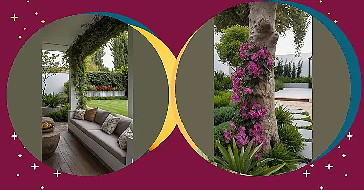 And can we talk about that dreamy tree throwing shade (literally, not metaphorically!) with its fuzzy yellow ‘flowers’ looking like the softest bokeh filter? This isn’t just an outdoor space; it’s a whole mood. The dark path invites you to stroll, probably imagining you’re on a secret quest, while the bright walls make everything feel open and airy. It shows that with some clever outdoor gardens design, you can turn any boring wall into a vibrant, chill-out zone perfect for reading a book, sipping a juice, or just escaping the chaos of homework for a bit. It’s a plant party, and everyone’s invited!