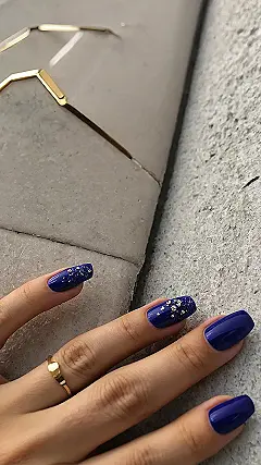 Seriously, these nails are goals! They’re perfect for a holiday party, a night out with friends, or even just chilling at home. Who needs a snow globe when you can have this much sparkle on your fingertips? Plus, the royal blue is so elegant, it’ll make you feel like a winter queen. Forget the frostbite, these nails are bringing the glam!