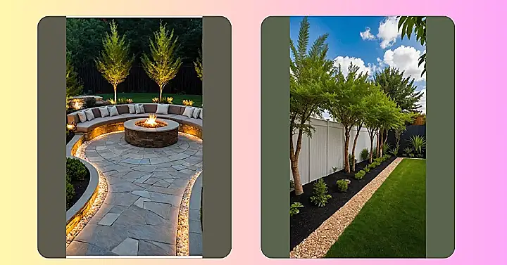 Forget about staring at your phone screen all night; this backyard is practically screaming, “Come on out and chill!” Just look at that fire pit, all warm and inviting. It’s practically begging for some epic s’mores sessions and maybe a few (slightly embellished) ghost stories. This isn’t just a simple backyard; it’s like a secret portal to the best weekend vibes, making you wonder why you ever thought your couch was the peak of comfort.