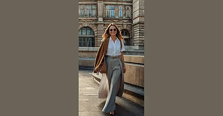 This look isn’t just about looking professional; it’s about feeling amazing. Forget stuffy business suits, this outfit is all about being comfy and stylish at the same time. Plus, those pants cuffs and sunglasses? Major style points! You’ll be so comfortable and confident, you might just start spontaneously busting out some samba moves in the office! (Just kidding… maybe!)