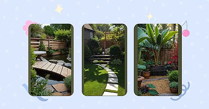 This garden is so cool, it’s like a secret agent’s hideout, but instead of gadgets, it’s got plants! They’ve got a sweet wooden bridge over a little pond, which is probably home to some very chill frogs plotting world domination (or just trying to catch a fly). It’s a totally creative garden design and it’s way cooler than your grandma’s flowerbeds, unless your grandma is secretly a landscape architect ninja.