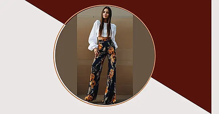 This outfit is totally rocking the “elegant floral dress” vibe, even though it’s not a dress at all! It’s like someone took a gorgeous floral print, decided to make it super comfy wide-leg pants, and then paired it with a chic, puffy-sleeved white top. It’s proof that you can be both stylish AND comfortable. Imagine strolling through a farmer’s market or heading to a casual party – this outfit would totally work for both! The colours are super flattering and the whole thing just looks effortlessly cool. No need for a complicated dress when these pants are this fantastic.