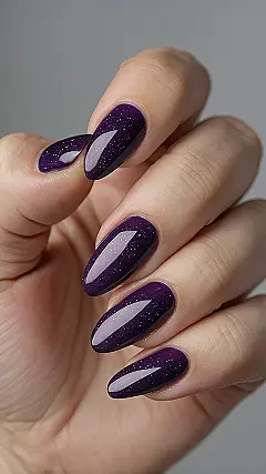 These purple nails are so incredibly cool, they look like a tiny galaxy decided to land right on your fingertips! With that deep, rich color and all those perfectly scattered sparkles, you’re basically rocking a midnight sky mani that’s ready for any adventure. Forget boring plain colors; these shimmery beauties are screaming “I’m fabulous, and I might just have superpowers!” Just try not to get too distracted by your own dazzling hands during your next TikTok scroll – it’s hard when your nails are this captivating.