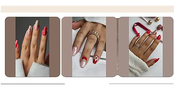 Nail designs during the holidays can be such a fun way to showcase your creativity. Think vibrant, eye-catching palettes, along with short, square, or sassy almond shapes that say, “Look at me!” Mix in some adorable acrylic designs to make your creations pop. These simple yet stunning ideas are guaranteed to make your nails the talk of the town—or at least the center of attention during the cookie exchange!