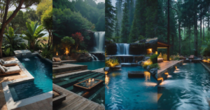 Imagine a world where the leaves are turning a fiery orange and red, and the air is crisp and cool. You’re walking through the woods, the scent of pine filling your nostrils, when you stumble upon a hidden pond. This isn’t just any pond though; it’s surrounded by a little wooden fence and scattered with smooth, gray rocks like stepping stones. You can almost hear the whispers of the wind rustling through the leaves, and you know this is a perfect spot to sit and enjoy the peacefulness of the fall season.