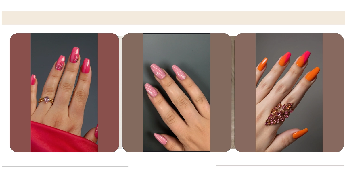 These nails are giving off major sunset vibes, like the moment the sun dips below the horizon and paints the sky in orange and pink! They might not be exactly ‘rose pink,’ but that combo of bright orange fading into a cool pink is super trendy and totally Instagram-worthy. Maybe we can start calling it “sunset rose” from now on, what do you think?
