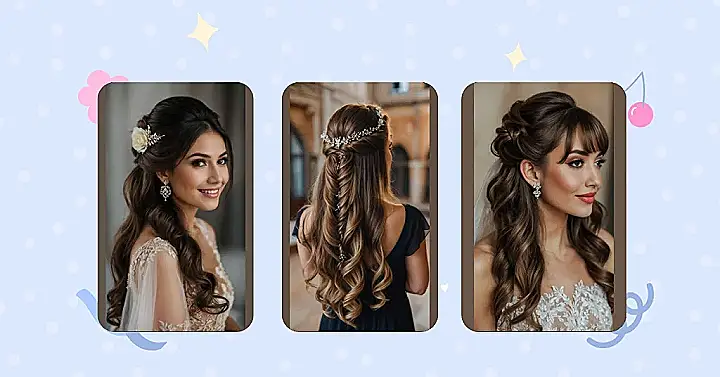 Being a bridesmaid means your hair has a serious mission: survive the day! It needs to look fabulous for photos, handle hugs without losing its shape, and somehow stay looking fresh from walking down the aisle to dancing the night away. A half-up style like this is pretty genius because it looks super elegant but also keeps hair out of your face when you’re trying to help the bride or just navigate the wedding cake line. You definitely need a style that can handle all the fun chaos and still have you feeling confident and glamorous!