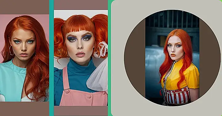 This picture is like a fashion magazine come to life! The model’s fiery red hair is a total head-turner, especially with that bold eyeshadow! It’s like she’s ready to take on the world with a fierce and confident attitude. You’ve got to love the way her outfit complements her hair. The black and gold just scream “I’m here to impress”! It’s like she’s a queen ready to walk down a red carpet, and we’re all just waiting to see what she does next.