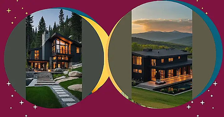 This house is like a super cool treehouse, but instead of being made of wood, it’s got sleek black walls and tons of windows, which is perfect for soaking in the epic mountain views. Imagine waking up to those amazing sunrise colors over the peaks – talk about a view that’ll make you want to get out of bed! It’s a total modern mountain home vibe.