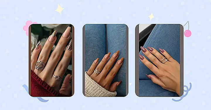 These nails are giving us major “sophisticated adult” vibes! That deep burgundy shade is seriously chic, and the way it’s perfectly polished makes you want to reach out and touch them (don’t worry, we’ll just admire from afar). And those sparkly rings? They’re like the cherry on top of a delicious dessert!