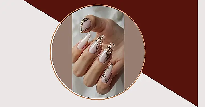 Forget those nails that look like they belong in a museum (and probably cost a fortune!). These nails, peeking out from that comfy sweater like a secret agent of style, are the real heroes. They’re so simple, like your favorite comfy hoodie, but the little touch of sparkle and that cool swirl? That’s where the classy magic happens. It’s like whispering “I’m fabulous” instead of shouting it with neon colours and 3D charms that get stuck in your hair.