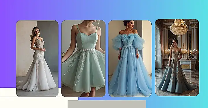 Also, those sleeves are the real deal! They’re so poofy and cute, you could probably use them as emergency pillows if you accidentally fall asleep at the dance. Plus, the whole light blue color scheme is totally giving off serene vibes, like you’re floating on a dreamy lagoon. You’ll be the coolest cucumber at prom, for sure!