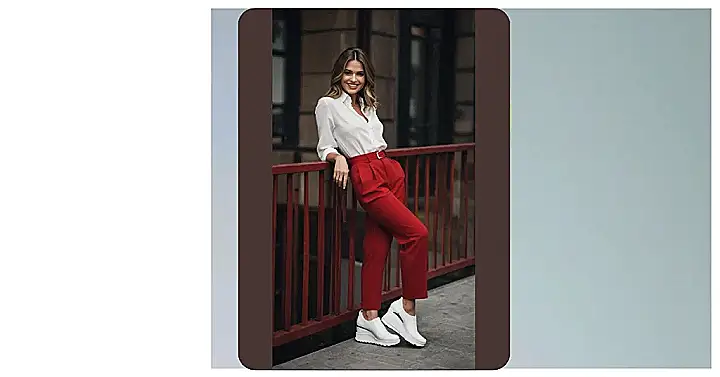 This girl is rocking the red pants and white shoes look! She’s looking super confident, like she’s ready to take on the world. And those pants? They’re definitely making a statement! It’s like she’s saying, “I’m here, I’m fierce, and I’m ready to rock this outfit!”