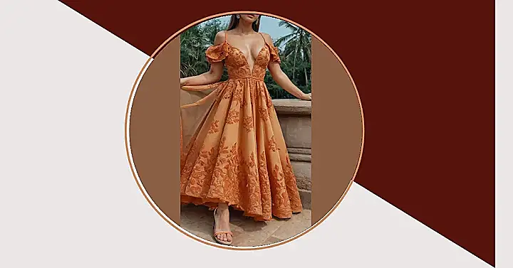 And if you’re feeling a little extra fancy, just imagine how amazing you’d look wearing this dress to prom or a summer wedding! The color is kind of like a sunset, and it’s super flattering on all skin tones. You’ll definitely stand out from the crowd in this dress! It’s like you’re walking around with your own personal flower garden, but without any of the pesky bugs. Just pure, beautiful floral power!