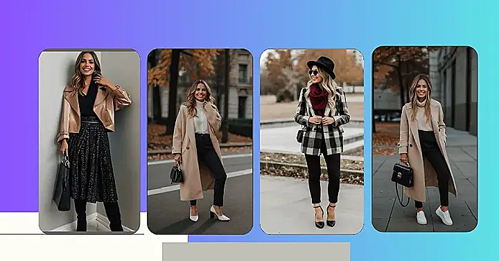 Forget the oversized sweaters and bulky boots – this fall, we’re going for effortless style that’s just as comfy as it is cute! This outfit is perfect for those mid-sized fashionistas who want to look amazing without sacrificing comfort. The camel coat is a classic choice, but the black pants and white sneakers give it a modern twist. Plus, who doesn’t love a good black handbag to complete the look? It’s like the perfect blend of chic and cozy – just like your favorite fall day.