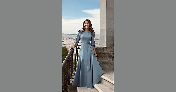 This frock is giving off total “princess who’s secretly a detective” vibes. Like, she could be waltzing into a ball, or she could be about to solve a mystery involving stolen jewels and a suspicious butler. Either way, she looks amazing doing it. It’s that perfect length that lets you dance without tripping, or, you know, dramatically reveal clues.