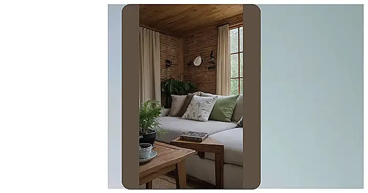 This living room looks like it’s straight out of a nature magazine! The big windows let in tons of sunshine, and the huge plant makes you feel like you’re chilling in a jungle. The couch is super comfy, perfect for relaxing and reading a book. Imagine curling up with a good story and watching the leaves sway in the breeze.