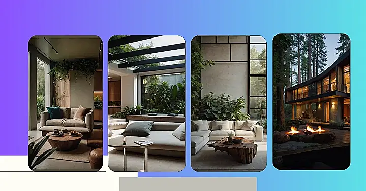 You can almost hear the birds chirping outside and feel the breeze coming in through those huge windows. It’s like having a slice of the outdoors right inside your home, which is the whole idea of “Nature Living Spaces”. This room is a reminder that sometimes, the best things in life are simple. Just a comfy couch, a warm sunbeam, and a view of the great outdoors!