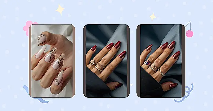 Look at these nails! They’re like tiny, sparkling jewels on your fingertips, showing off that deep, gorgeous berry colour with just the right amount of glitter shimmer. They instantly make you feel fancy, like you could be walking a runway or just totally owning that math test. The best part is, they look super sophisticated and put-together without looking like you tried too hard. It’s the perfect way to add a little sparkle and class to your look without spending hours on complicated designs that smudge right when you’re done.