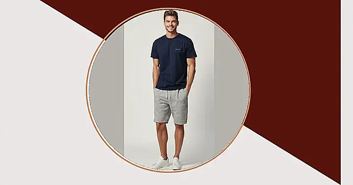 This guy is rocking a classic look that’s perfect for relaxing and hanging out with friends. A simple navy t-shirt and comfy grey shorts – talk about a winning combo! He’s got the “I’m not trying too hard, but I still look good” vibe going on. Maybe he’s heading to the park for a game of frisbee or just chilling on the couch with a good movie. Whatever he’s up to, this outfit makes him look super relaxed and ready to have a good time.