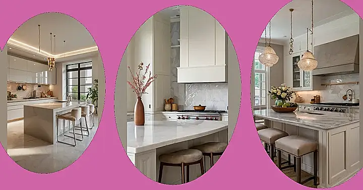 Seriously though, this “chic kitchen design” screams “I have my life together” – even if you’re just microwaving leftovers in your pajamas. It’s the kind of kitchen that makes you want to host a fancy dinner party… or at least pretend to while scrolling through Instagram. Just try not to spill anything on that expensive marble!